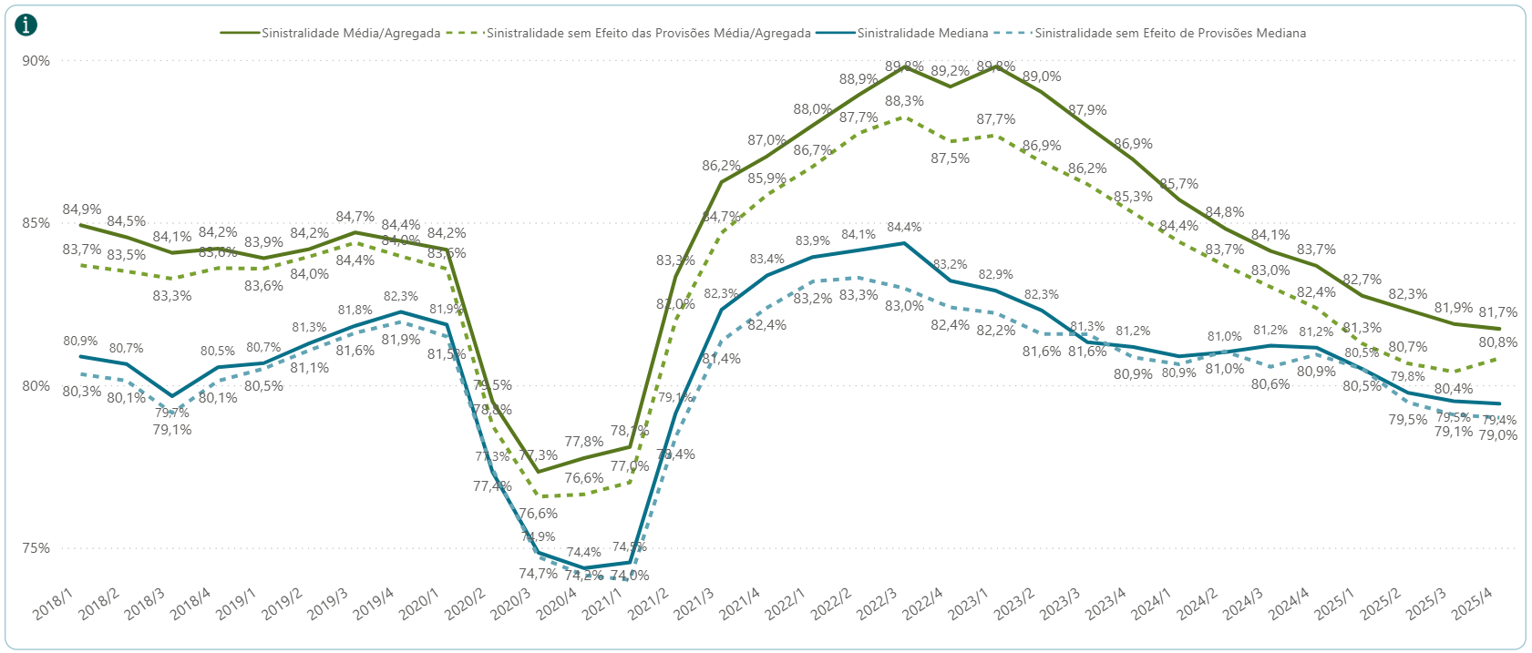 A sinistralidade das operadoras baixou? Sim. A sinistralidade média fechou 2025 em 81,7%, o nível mais baixo desde a pandemia e inferior ao patamar observado no período pré-pandêmico.